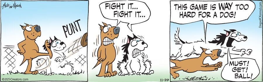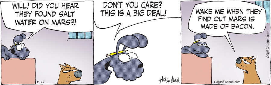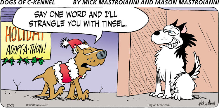 Dogs of C-Kennel, created by Mick Mastroianni, was featured as a comic strip in development in February 2007. Syndicated in 2010, the Dogs are now produced by Mick and his brother, Mason Mastroianni, B.C. cartoonist and Wizard of Id Illustrator.