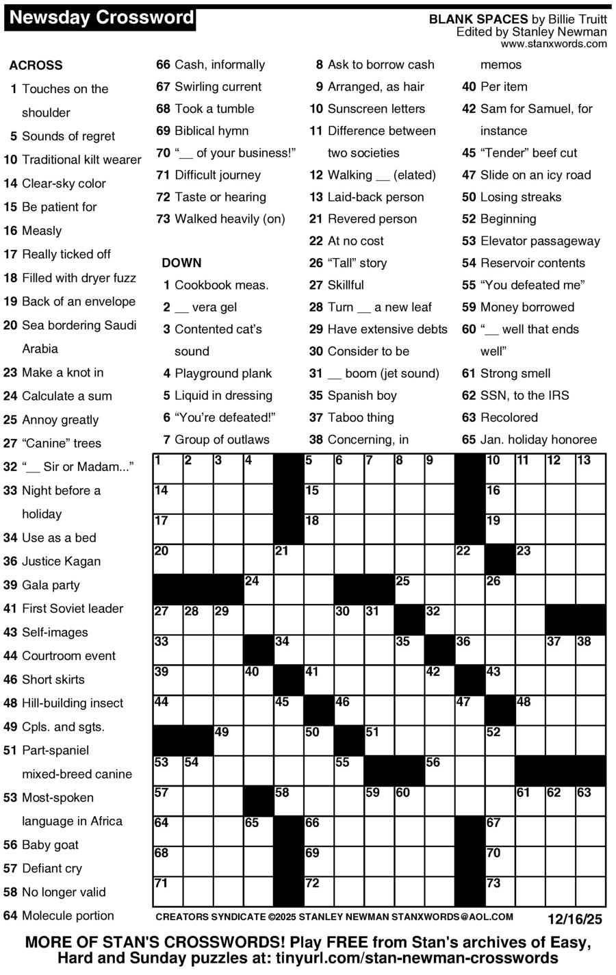 Stan Newman crafts a fresh and challenging puzzle every day of the week! Stay sharp and challenge yourself to solve each and every one.