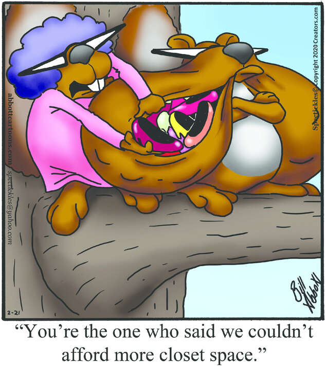 Spectickles, a cartoon primarily about a married couple with, to put it mildly, communication challenges, is an amalgamation of physical traits that author Bill Abbott finds humorous: the deadpan expression and gravity-tugged flesh of Walter Matthau, the powerful presence of Ethel Merman, the glasses of his great-grand-parents and a host of other subtleties.
