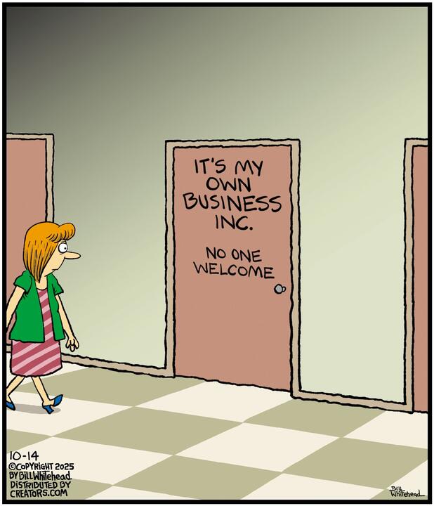 Bill’s career in cartooning started in the fifth grade, when he would copy drawings from comic strips, the New Yorker magazine and editorial cartoons. After a while he developed his own style, focusing primarily on the drawing. He soon realized his characters would need something to do and say, so he gave them their own odd little world to live in. Soon everyone around him became fair game. By college, Bill was cartooning for the school paper. Later, he created posters for book and record stores and freelanced for the Saturday Evening Post, Advertising Age, the Boston Phoenix, Wall Street Journal and King Features. In the '80s, he syndicated Sidelines, a sports panel cartoon.
