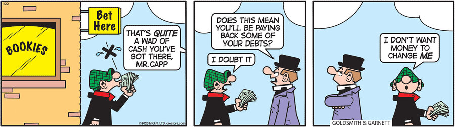 Andy Capp's appeal goes beyond the newspaper pages, however. In 1982, the cartoon was made into a musical by Manchester's Royal Exchange Theater, and productions were put on in London and all over England. And in 1988, the strip was adapted into a television series by the British Broadcasting Corporation. In addition, Andy Capp's instantly recognizable face appears on merchandise around the world, from commercials to T-shirts to hot fries.