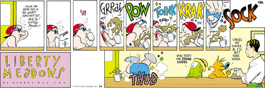 Liberty Meadows, is one of Cho's most popular works spreading laughter by bringing these animal to life with his sense of humor and superior artwork.