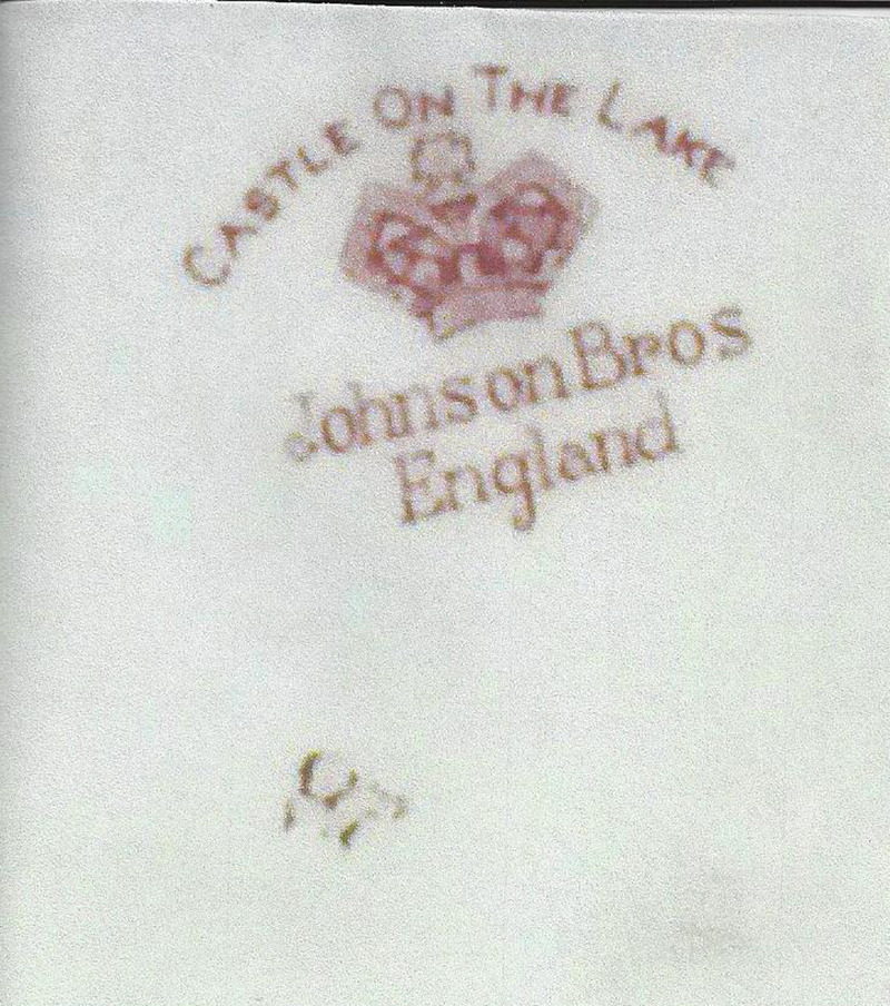Q: Johnson Brothers made your set of plates in Staffordshire, England. Alfred, Henry, and Frederick Johnson founded their earthenware and ironstone factory in 1883. In 1968 the company became part of the Wedgwood Group. "Castle on the Lake" is the name of your pattern. Although the pattern was made in red, it was also available in blue, brown and multi-colors.