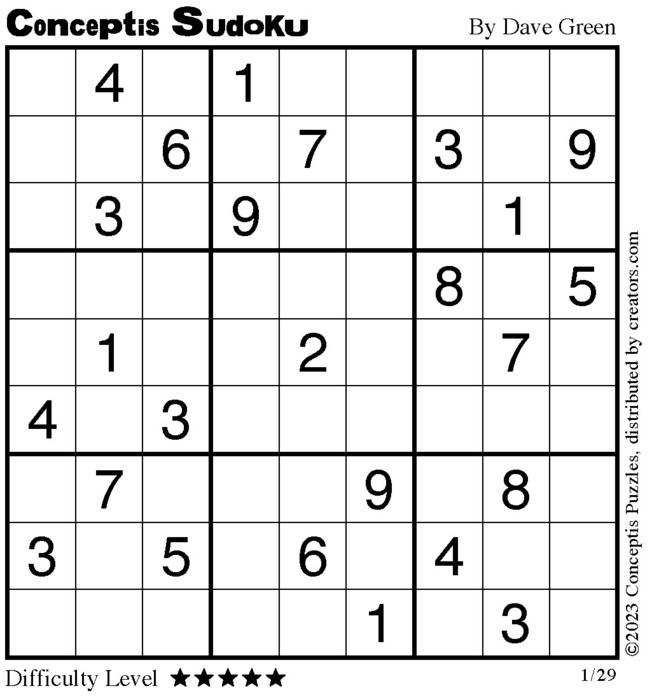 Conceptis Classic Sudoku for Jan 29, 2023
