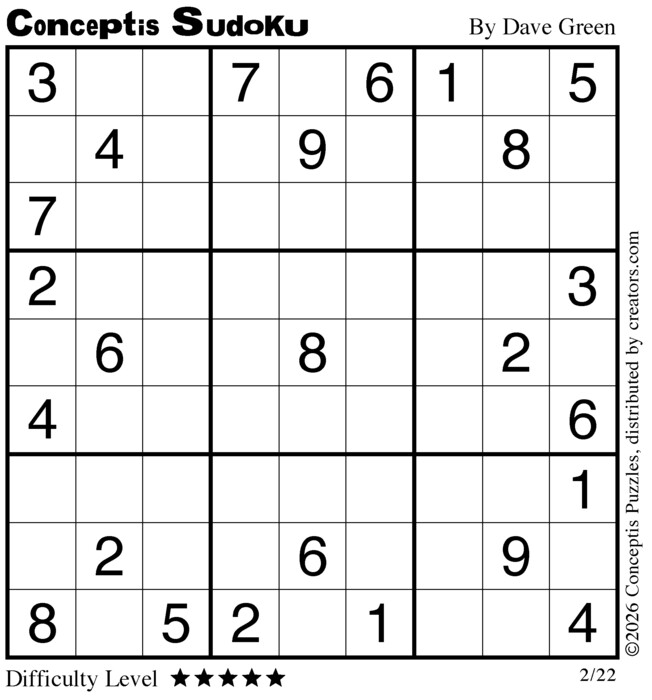Conceptis Classic Sudoku for Feb 22, 2026