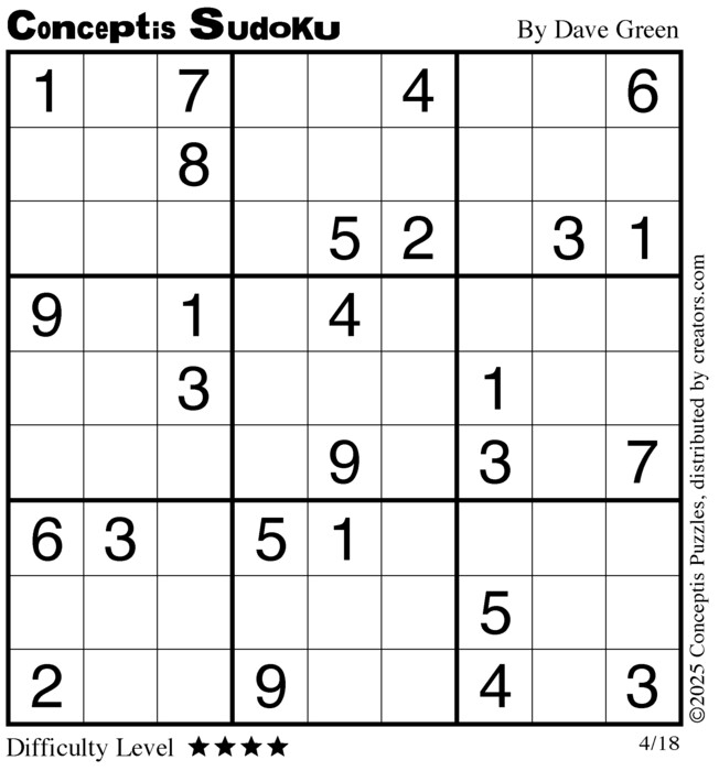 Conceptis Classic Sudoku for Apr 18, 2025