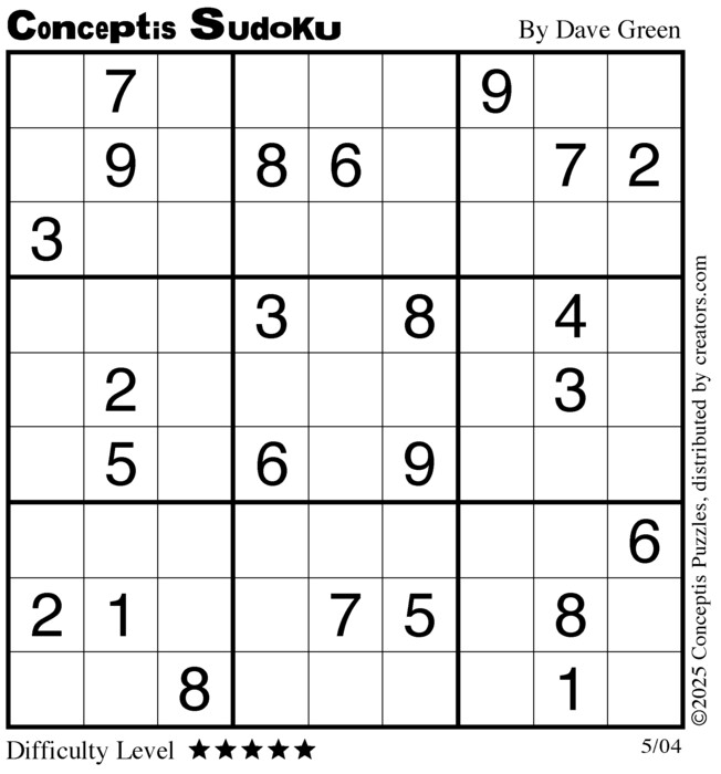 Conceptis Classic Sudoku for May 04, 2025