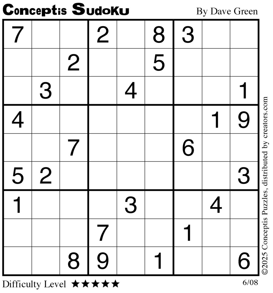 Conceptis Classic Sudoku for Jun 08, 2025