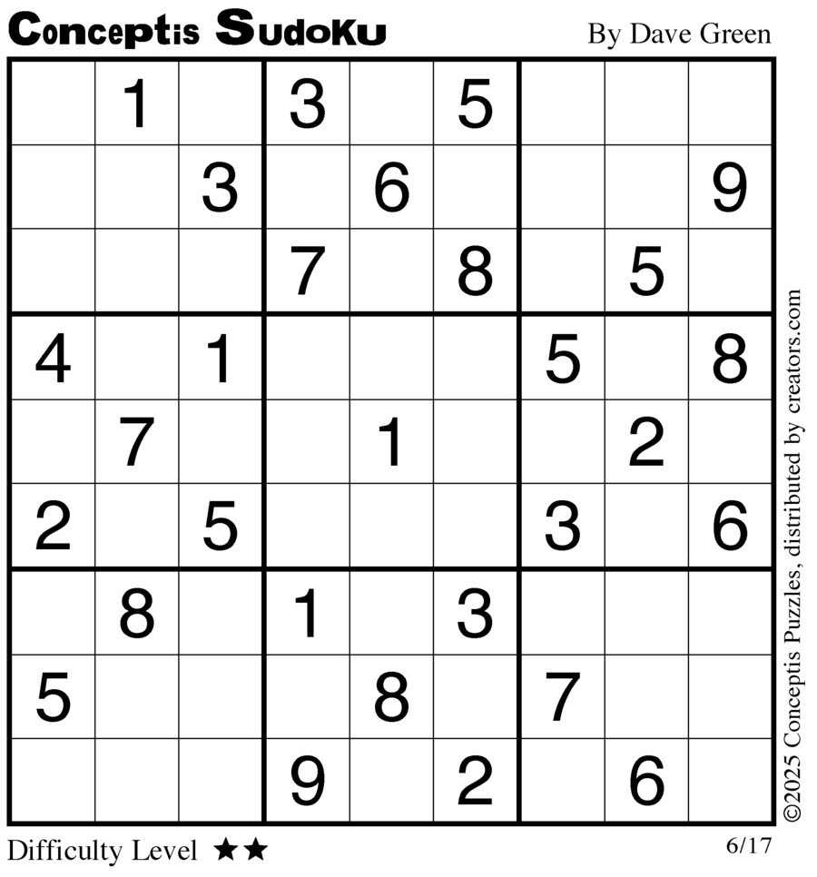 Conceptis Classic Sudoku for Jun 17, 2025
