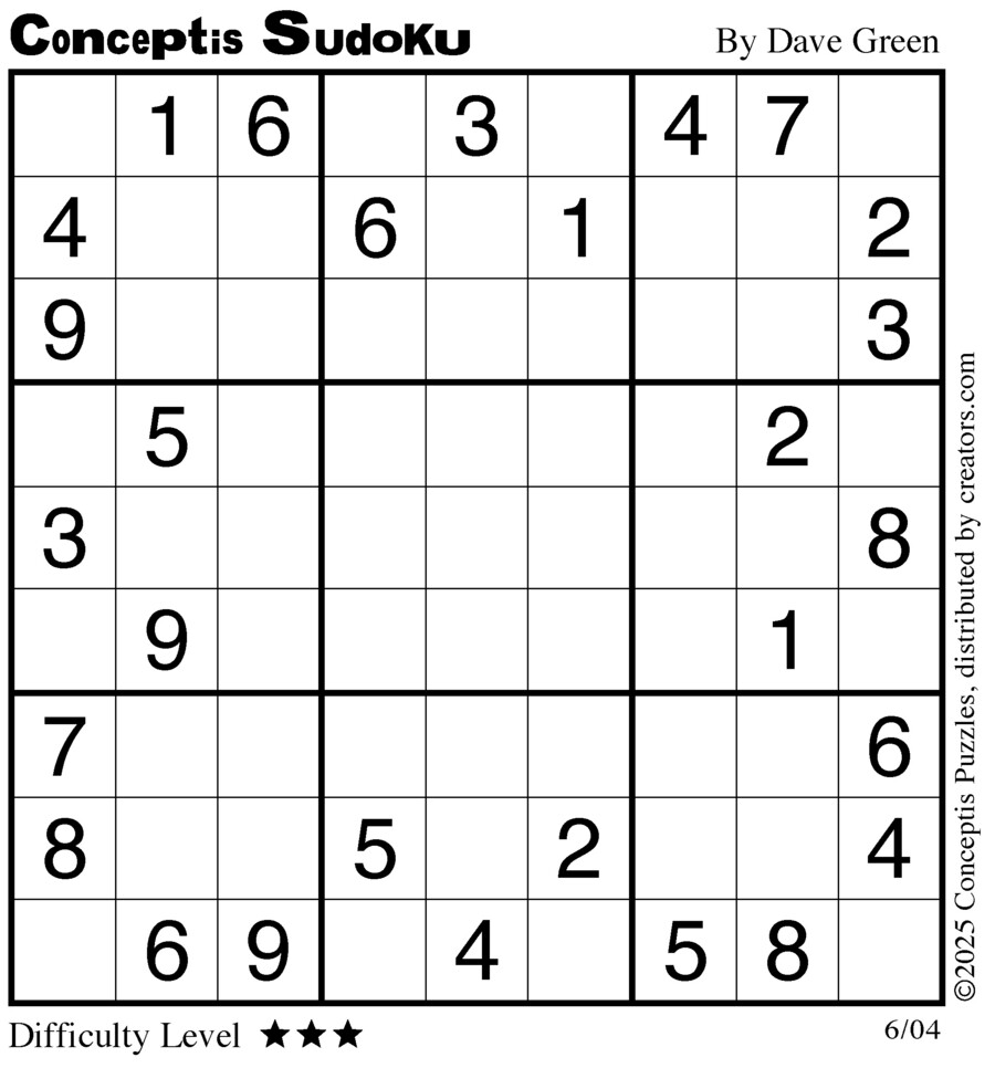 Conceptis Classic Sudoku for Jun 04, 2025