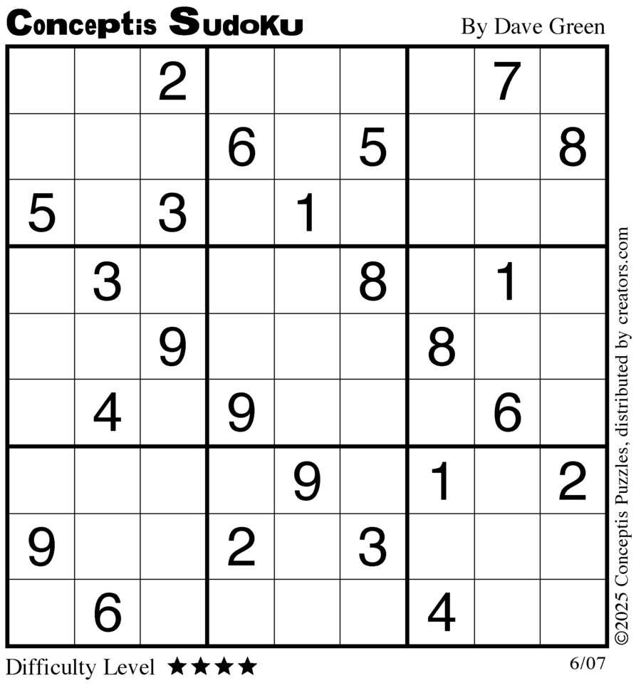 Conceptis Classic Sudoku for Jun 07, 2025