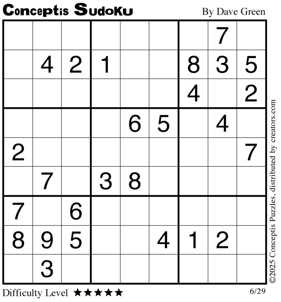 Conceptis Classic Sudoku for Jun 29, 2025