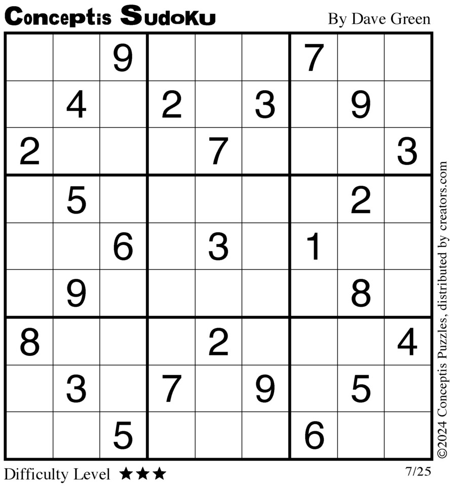Conceptis Classic Sudoku for Jul 25, 2024