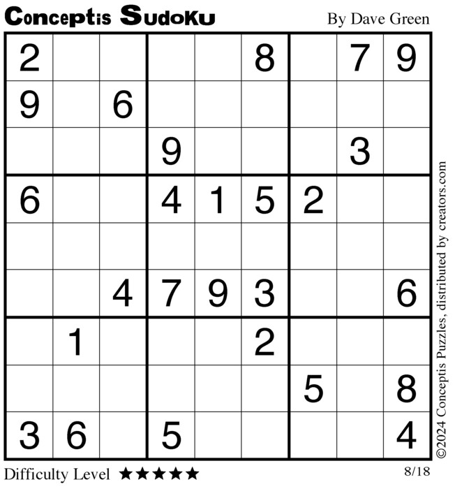 Conceptis Classic Sudoku for Aug 18, 2024