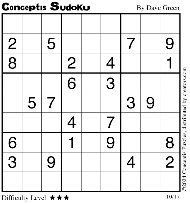 Conceptis Classic Sudoku for Oct 17, 2024