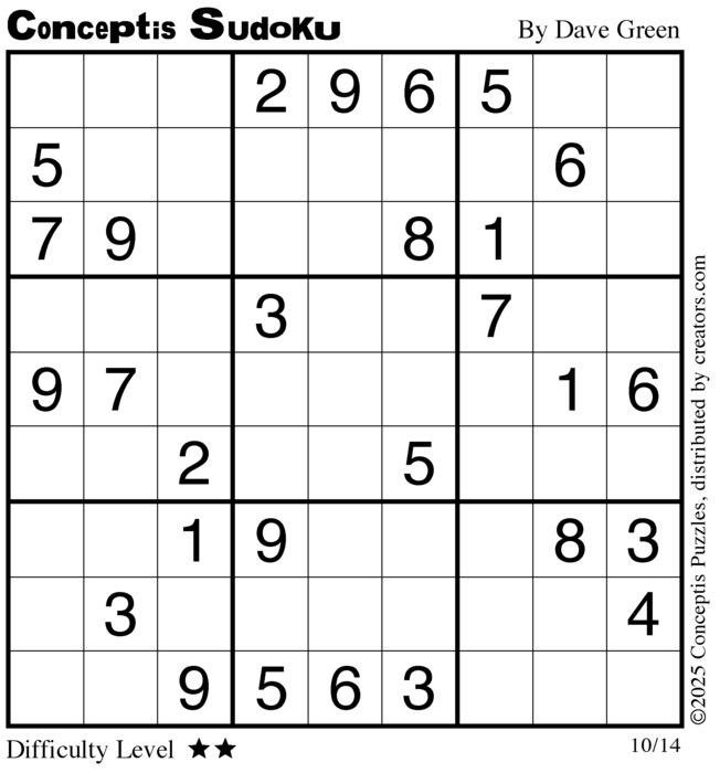 Conceptis Classic Sudoku for Oct 14, 2025