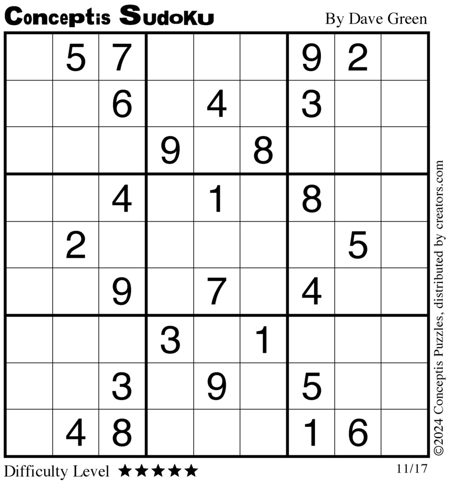 Conceptis Classic Sudoku for Nov 17, 2024
