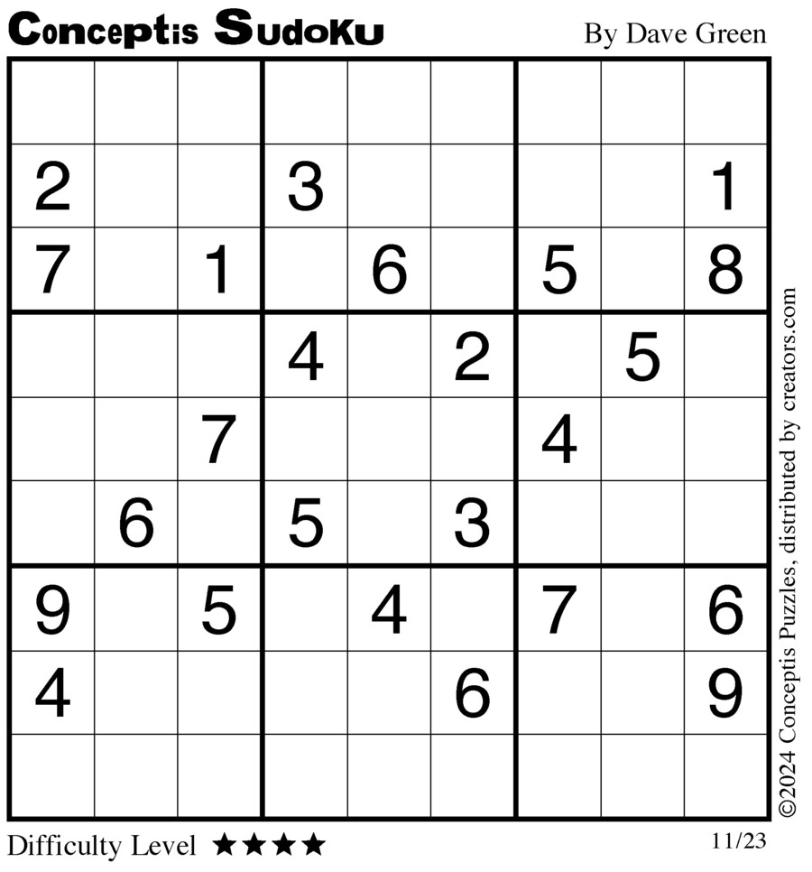 Conceptis Classic Sudoku for Nov 23, 2024