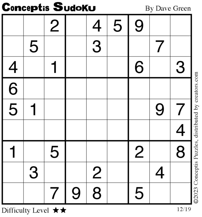 Conceptis Classic Sudoku for Dec 19, 2023