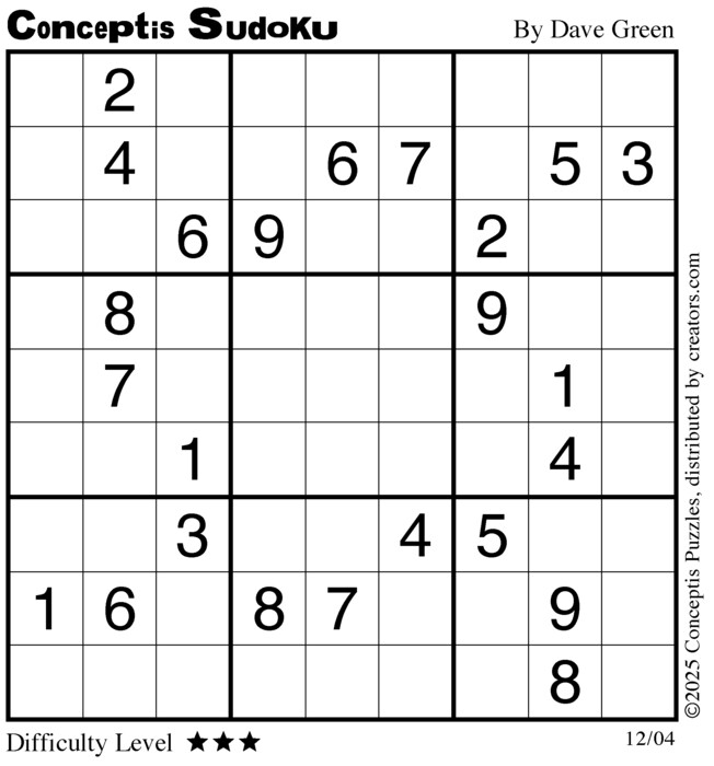 Conceptis Classic Sudoku for Dec 04, 2025