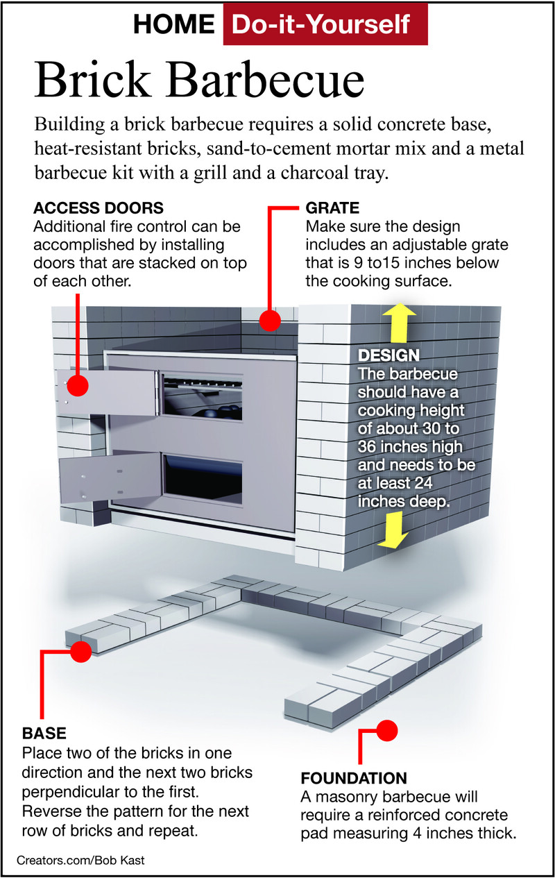 Dear James: I want to add a brick barbecue grill on our concrete patio. What are some basic tips for sizing, design and construction of a simple-to-build one? — Brian K.