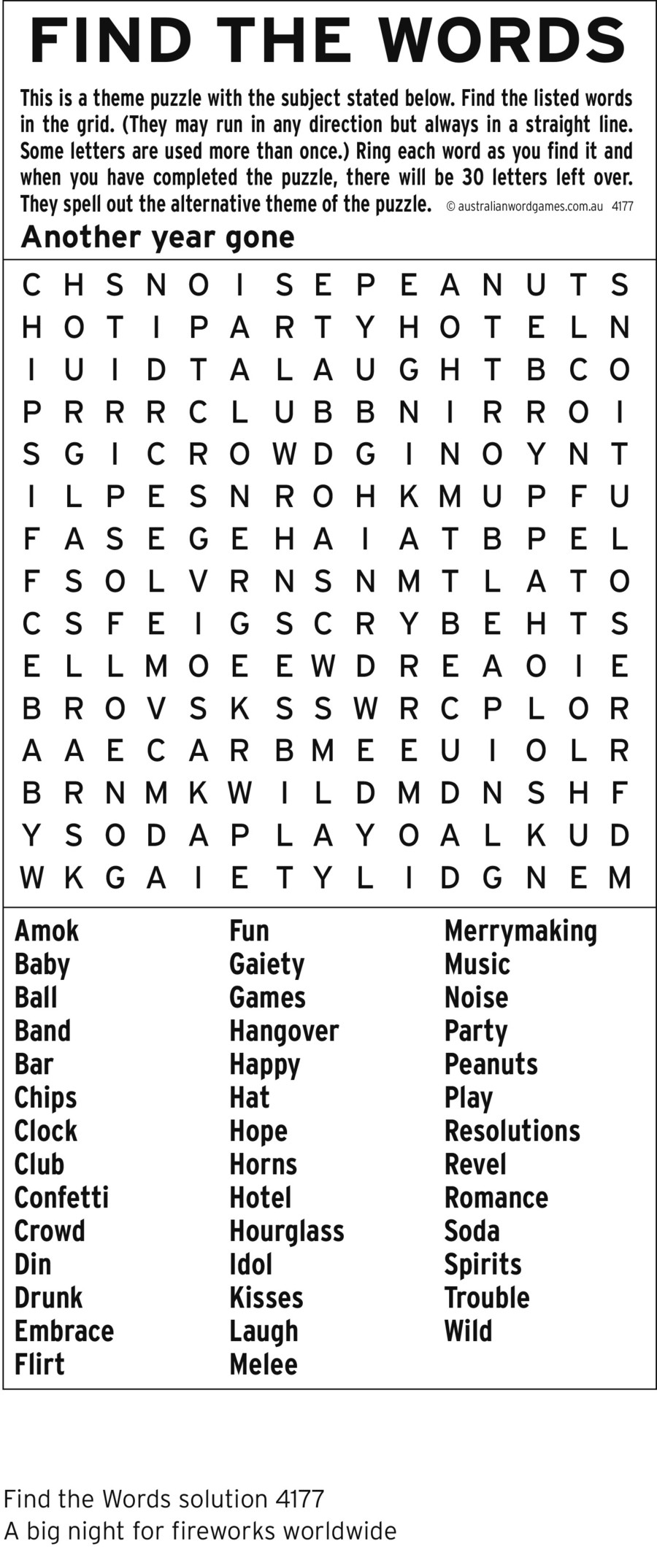 International Wordfind for Oct 22, 2018