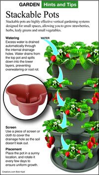Q: I saw an interesting stackable flowerpot at the store the other day. It showed flowers in the layers, but I was thinking it looked like a way to grow strawberries. A long time ago, my mom had a strawberry flowerpot with holes in the sides. I don't remember getting many strawberries from it, but I think it might be fun to try. Do these really work for strawberries?