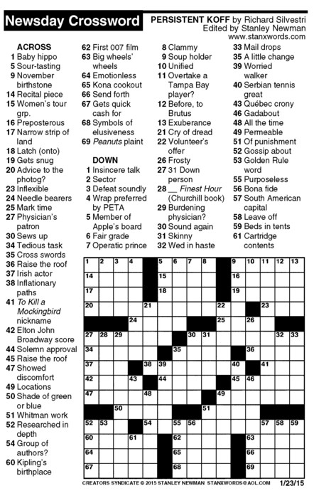 Newsday Crossword Puzzle for Jan 23, 2015