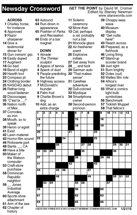 Newsday Crossword Puzzle for Jan 21, 2015