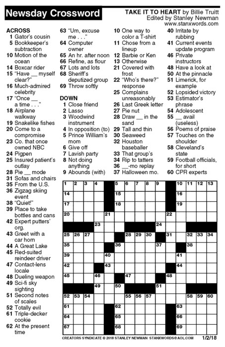 Newsday Crossword Puzzle for Jan 02, 2018