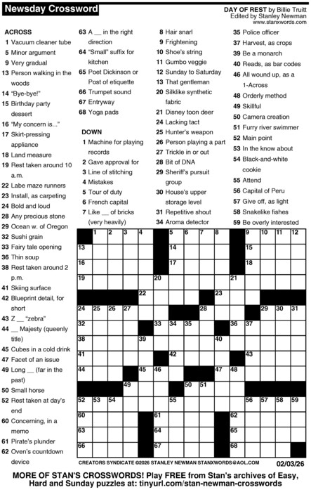 Newsday Crossword Puzzle for Feb 03, 2026