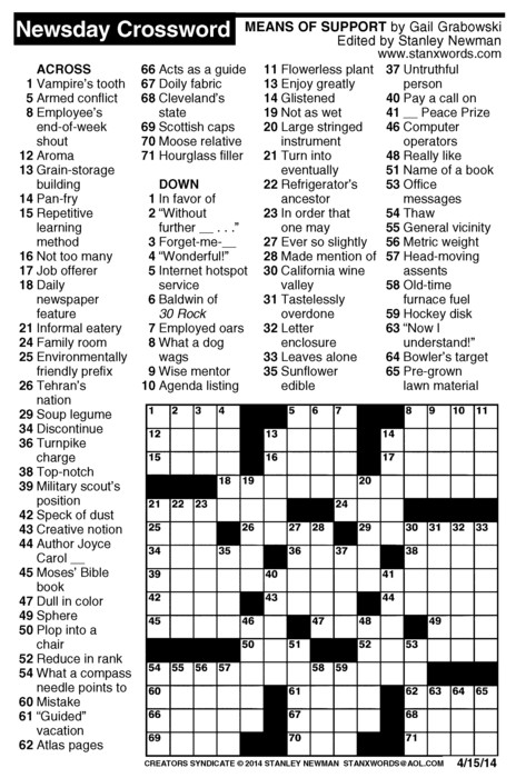 Newsday Crossword Puzzle for Apr 15, 2014