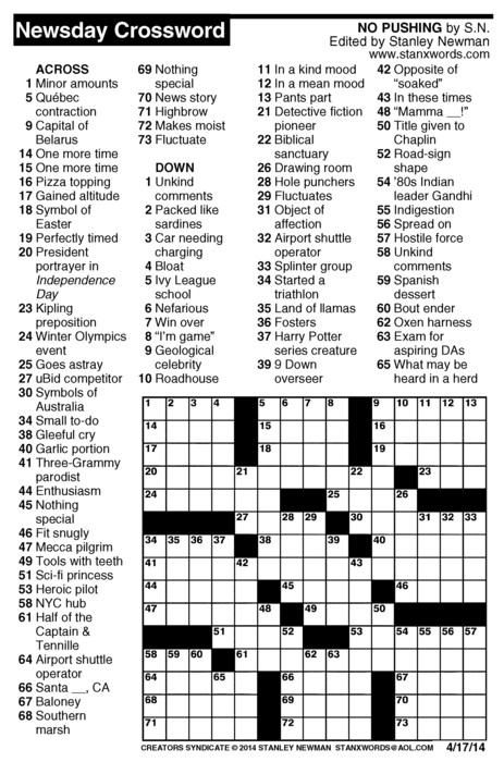Newsday Crossword Puzzle for Apr 17, 2014