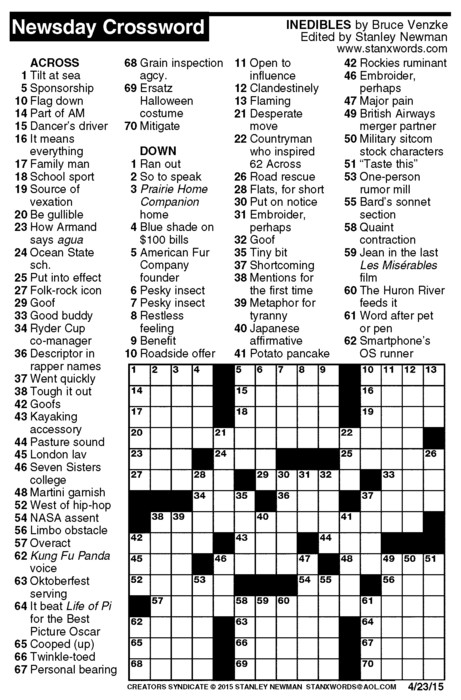 Newsday Crossword Puzzle for Apr 23, 2015