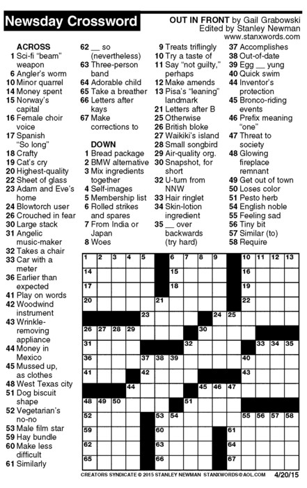Newsday Crossword Puzzle for Apr 20, 2015