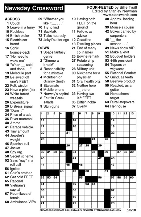 Newsday Crossword Puzzle for May 08, 2018