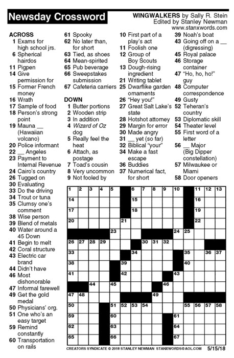 Newsday Crossword Puzzle for May 15, 2018
