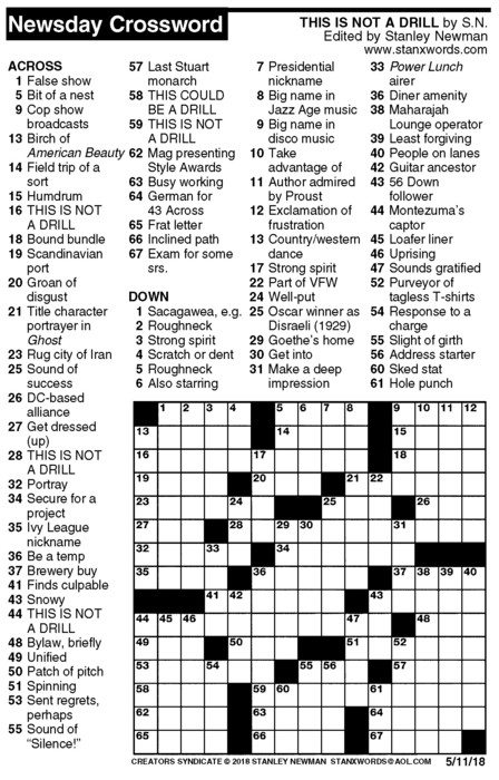 Newsday Crossword Puzzle for May 11, 2018
