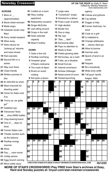 Newsday Crossword Puzzle for May 12, 2025