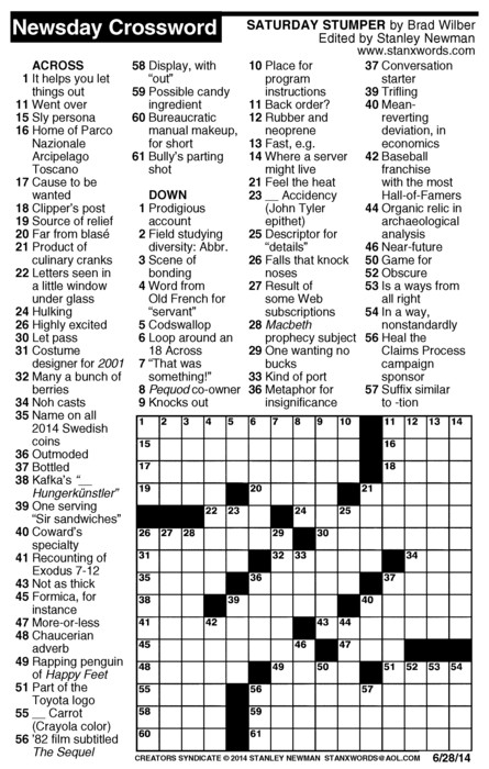 Newsday Crossword Puzzle for Jun 28, 2014