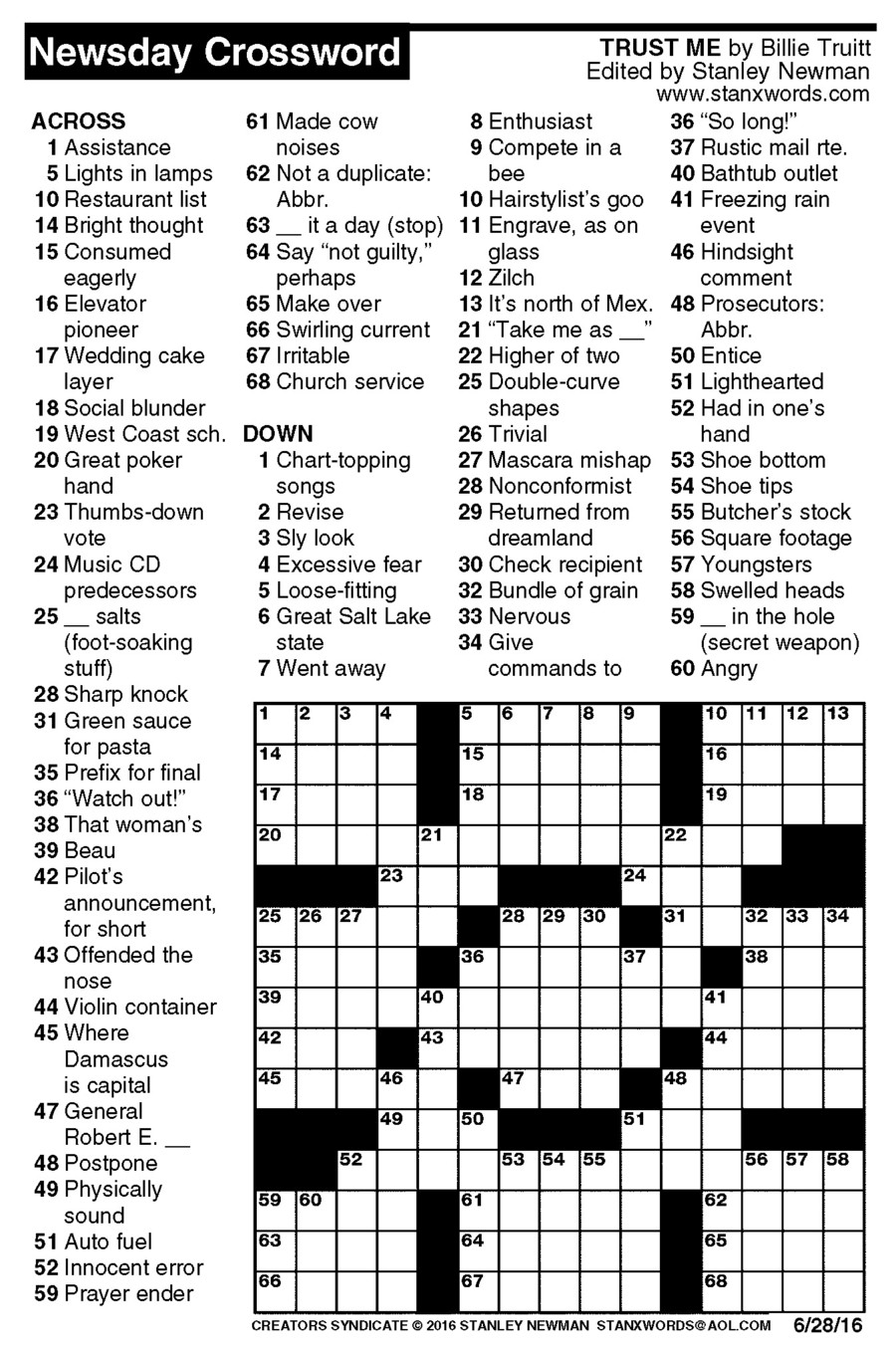 Newsday Crossword Puzzle for Jun 28, 2016