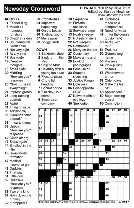 Newsday Crossword Puzzle for Jul 18, 2017
