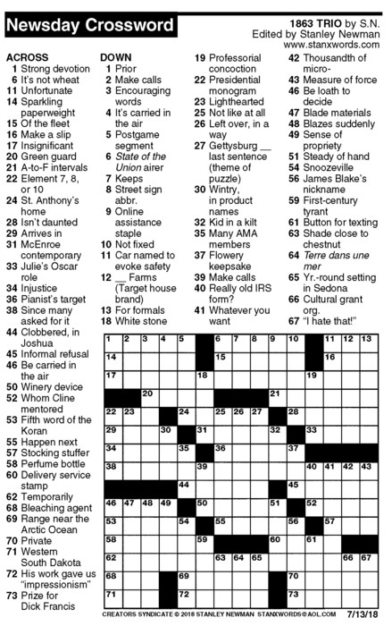 Newsday Crossword Puzzle for Jul 13, 2018