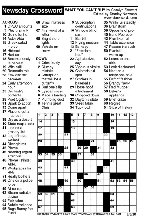 Newsday Crossword Puzzle for Jul 08, 2020