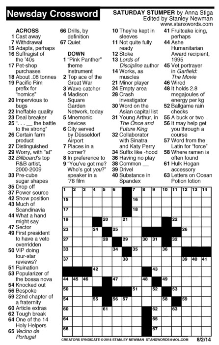 Newsday Crossword Puzzle for Aug 02, 2014