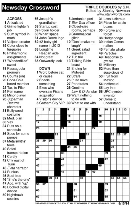 Newsday Crossword Puzzle for Aug 15, 2014