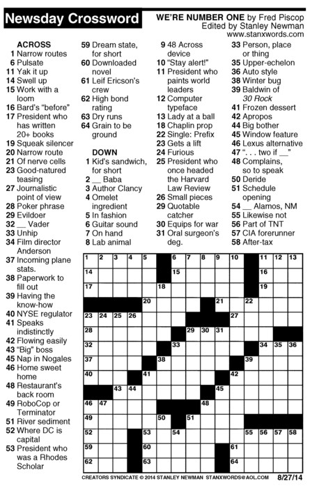 Newsday Crossword Puzzle for Aug 27, 2014