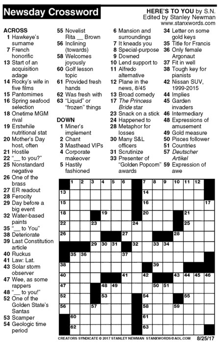 Newsday Crossword Puzzle for Aug 25, 2017