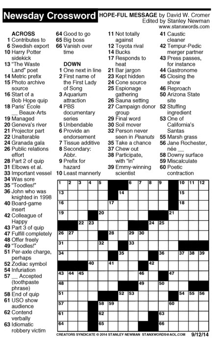Newsday Crossword Puzzle for Sep 12, 2014