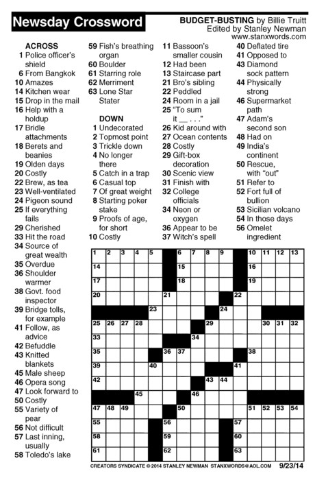 Newsday Crossword Puzzle for Sep 23, 2014